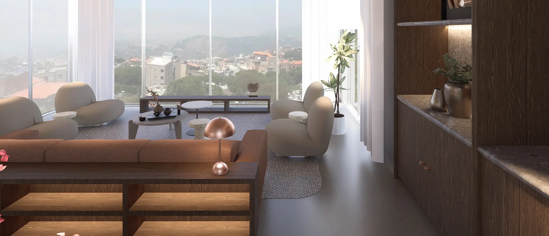 Nestled in the serene hills of Lebanon, this family apartment is designed for a family of four seeking a harmonious balance between luxury, calmness, and practicality. With breathtaking views stretching from the mountains to the sea, the home becomes a retreat that connects its residents to nature while offering a sense of refined comfort.