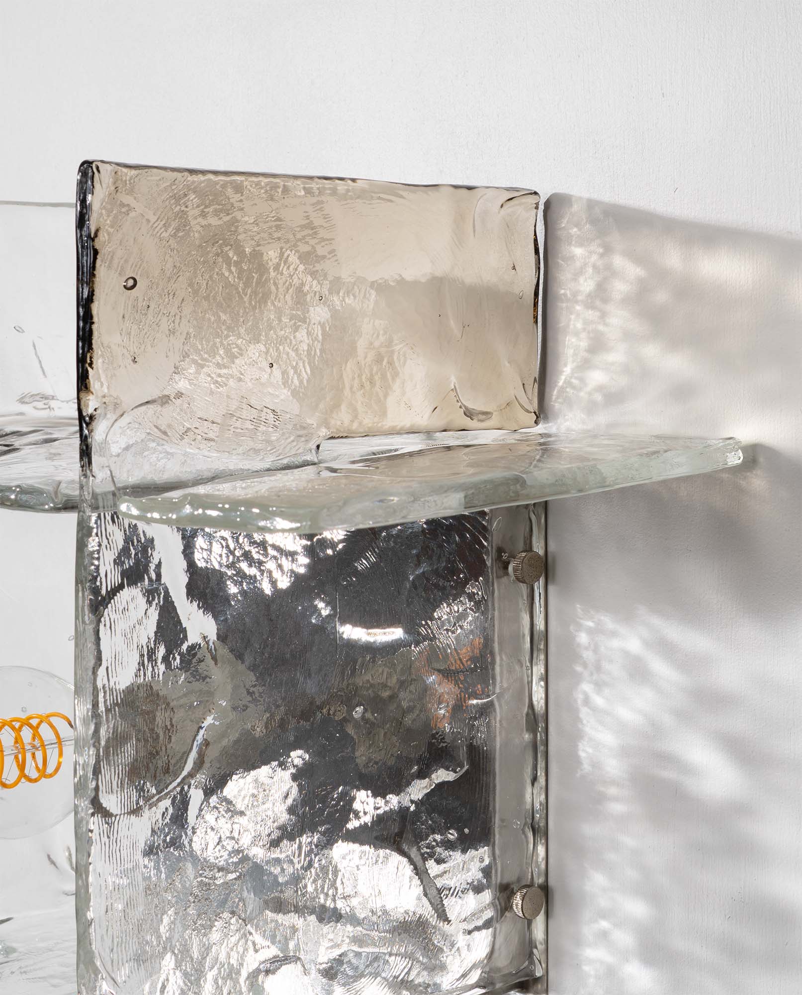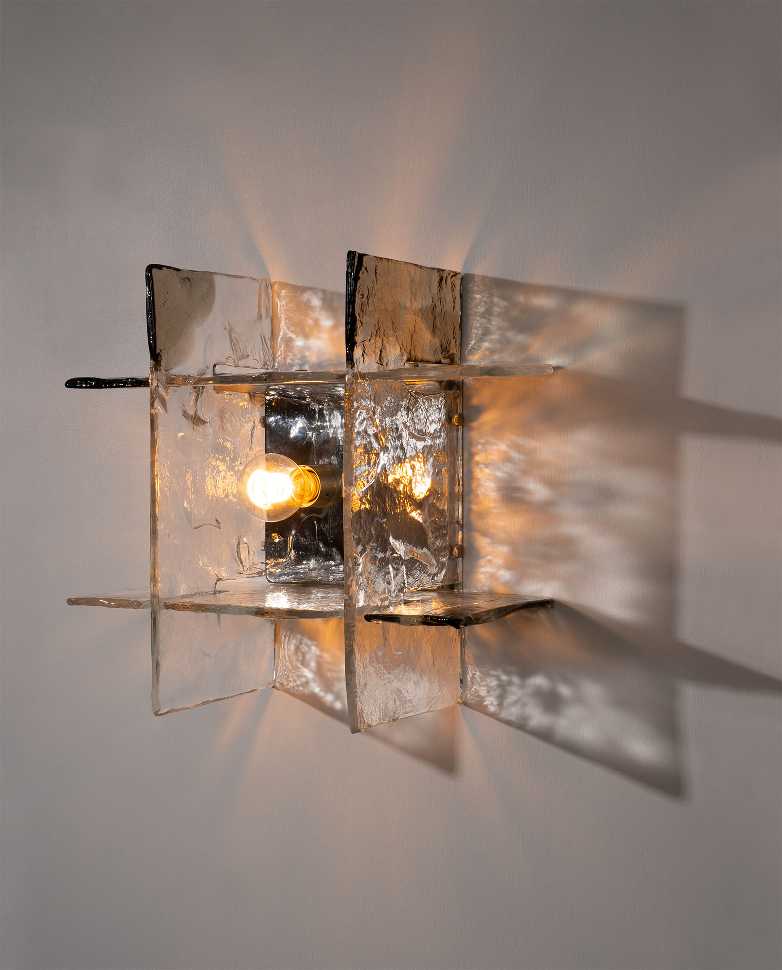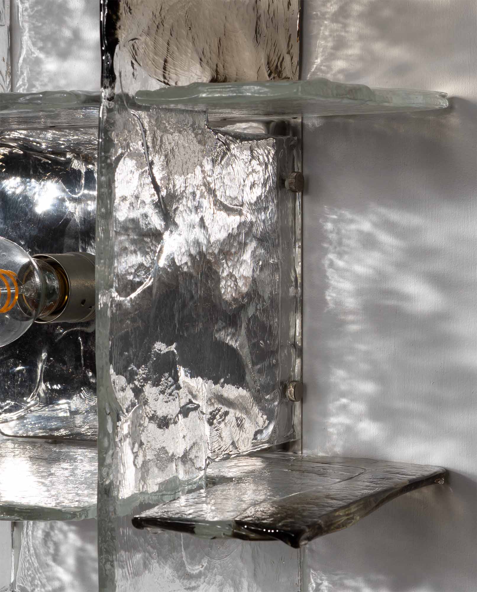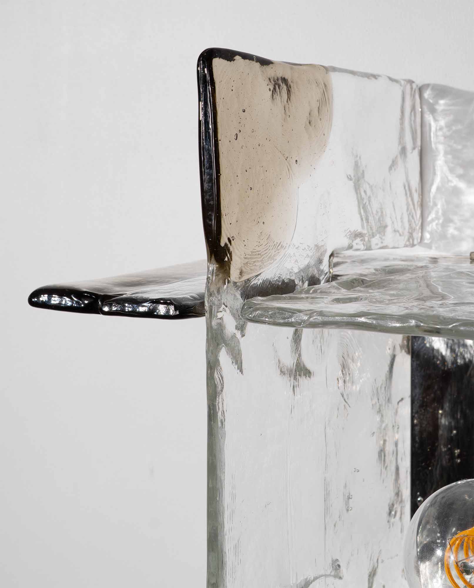 Mid-century ceiling or wall sconces designed by Carlo Nason for AV Mazzega, Italy, 1970–1979. Featuring large Murano glass pieces in transparent and brown hues with textured surfaces, these lights exemplify Italian mid-century modern design.