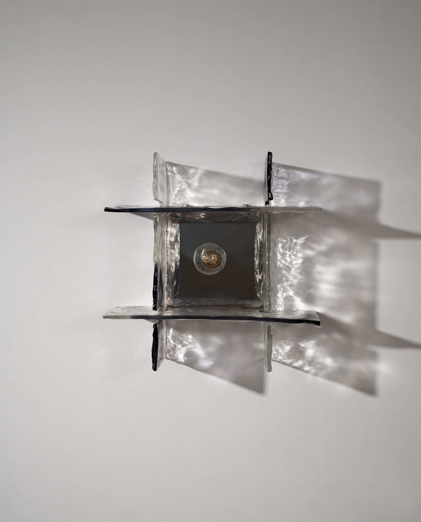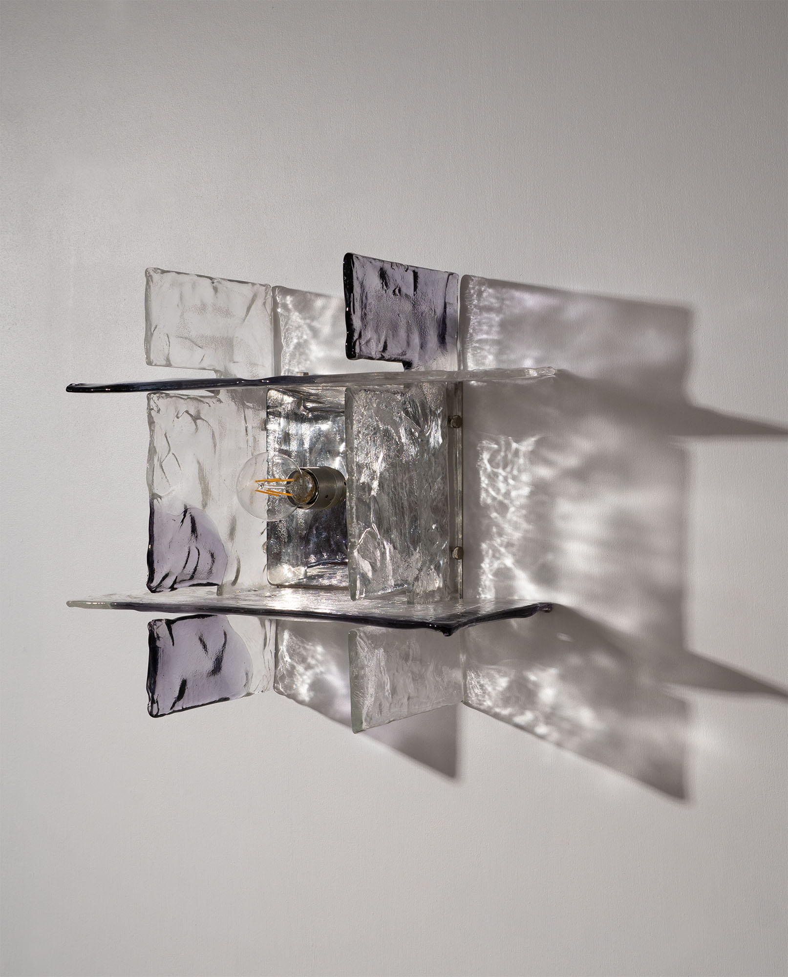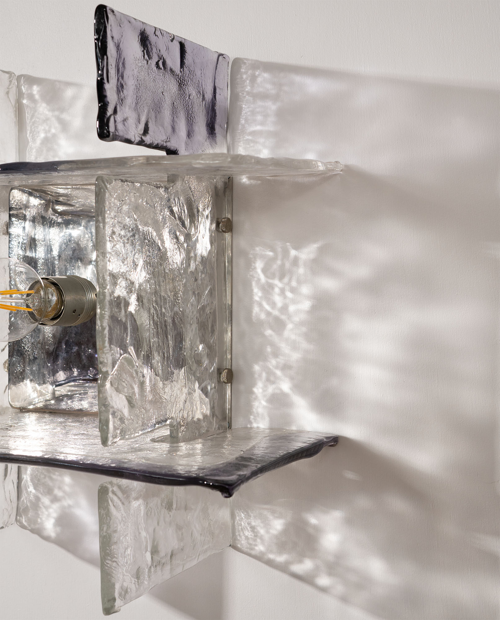 Mid-century ceiling or wall sconces designed by Carlo Nason for AV Mazzega, Italy, 1970–1979. Featuring large Murano glass pieces in transparent and purple hues with textured surfaces, these lights exemplify Italian mid-century modern design.